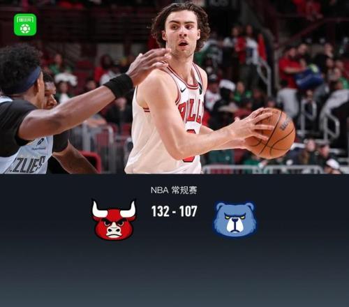 第四節公牛迪林厄姆拿下10分,灰熊傑倫-威爾斯拿下5分,最終公牛132-107戰勝灰熊