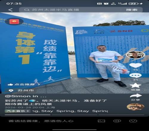 翻翻他的自媒體賬號,短短一周的時間裏,寫了4次對蘇州太湖數字半馬的期待。從上海靜安的“城市綠肺”,到蘇州太湖的浩渺煙波,西蒙用兩場比賽,跑進了滬蘇(州)的“同城節奏”。