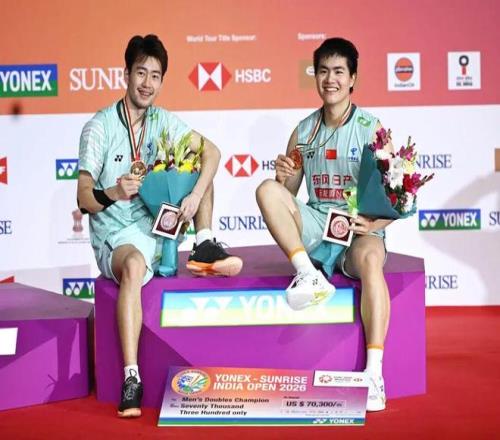 2026年1月18日,在印度新德裏舉行的2026年印度羽毛球公開賽男子雙打決賽中,中國組合梁偉鏗(右)、王昶2比1戰勝日本組合奪得冠軍。