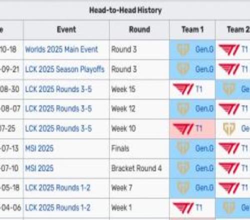 體育資訊04月08日稱 LCK常規賽,T1在Bo3中0:2不敵GEN.G。在雙方近10個大場交手中,T1僅在去年常規賽贏過1場,其他都由GEN取勝。