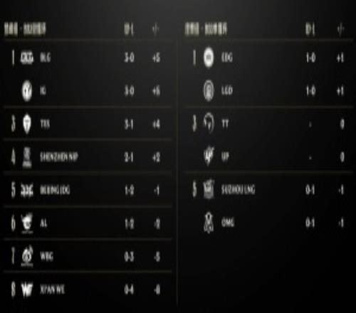 目前BLG由於勝場和小分與iG相同並列登峰組第一,LGD則因擊敗OMG與EDG目前均暫列涅槃組第一。