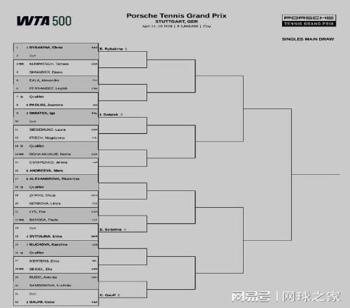 WTA500斯圖加特站:前四號種子是萊巴金娜、高芙、斯瓦泰克、斯維托麗娜。中國老將張帥首輪迎戰捷克人諾斯科娃。雙打方麵,張帥/奧斯塔彭科作為頭號種子出戰,蔣欣玗/徐一璠、楊釗煊/帕諾娃也將參賽。