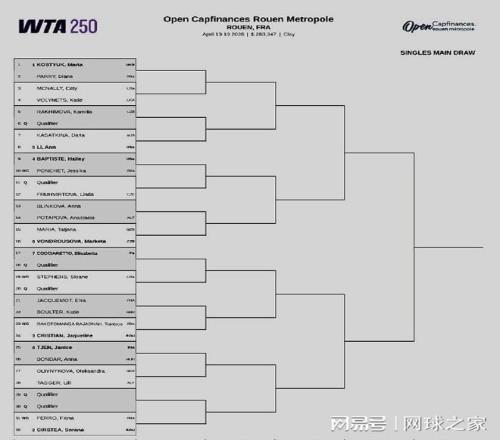 WTA250魯昂站:科斯秋克、科斯蒂亞作為前二種子領銜。萬卓索娃、卡薩金娜、斯蒂芬斯等名將出戰。
