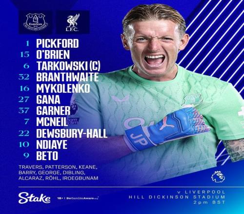 埃弗頓首發:1-皮克福德、15-奧布賴恩、6-塔爾科夫斯基、32-布蘭斯韋特、16-米科連科、37-加納、27-蓋伊、22-霍爾、7-麥克尼爾、9-貝托、10-恩迪亞耶