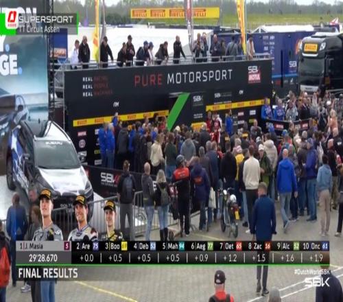 北京時間昨晚,在結束的2026世界超級摩托車錦標賽(WSBK)荷蘭站SSP組別第一回合正賽中,中國摩托車製造商“張雪機車”表現出色。其53號車手瓦倫丁·德比斯一度升至第一,後被反超,以第三名衝線。遺憾的是,德比斯最後一圈因壓線被罰,最終排名第四。