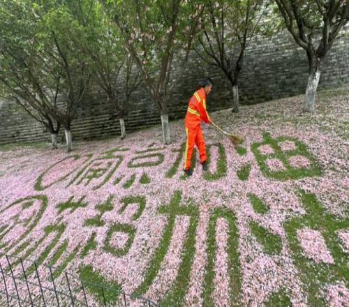 就像前幾天,引發熱議的蘇超嘉賓除了何潤東,還有劉金頂,他是南京玄武湖邊的一位管養員。在管理落花時,他用掃帚畫出了為南京隊、為蘇超加油的圖案。