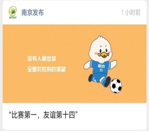 去年的“比賽第一,友誼第十四”口號十分出圈。(圖/南京發布)