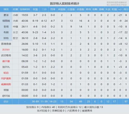 塔圖姆第三節同樣砍下10分,幫助凱爾特人維持了1分領先。三節打完,凱爾特人86-85領先1分。末節決戰,喬治三分幫助76人反超,格萊姆斯連砍6分。恩比德末節8分進賬,率隊拉開到15+!凱爾特人進攻斷電,第四節全隊11分。
